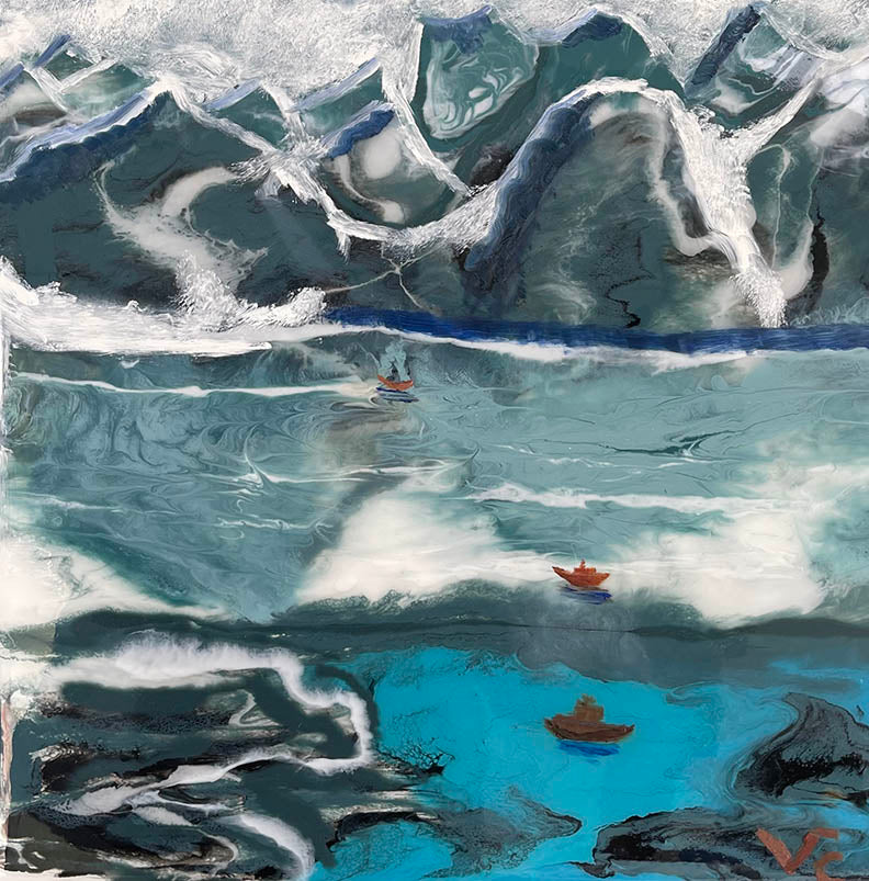 Vinay "ALASKA" 16 X16 Inches mixed media resin and acrylic on wood board.